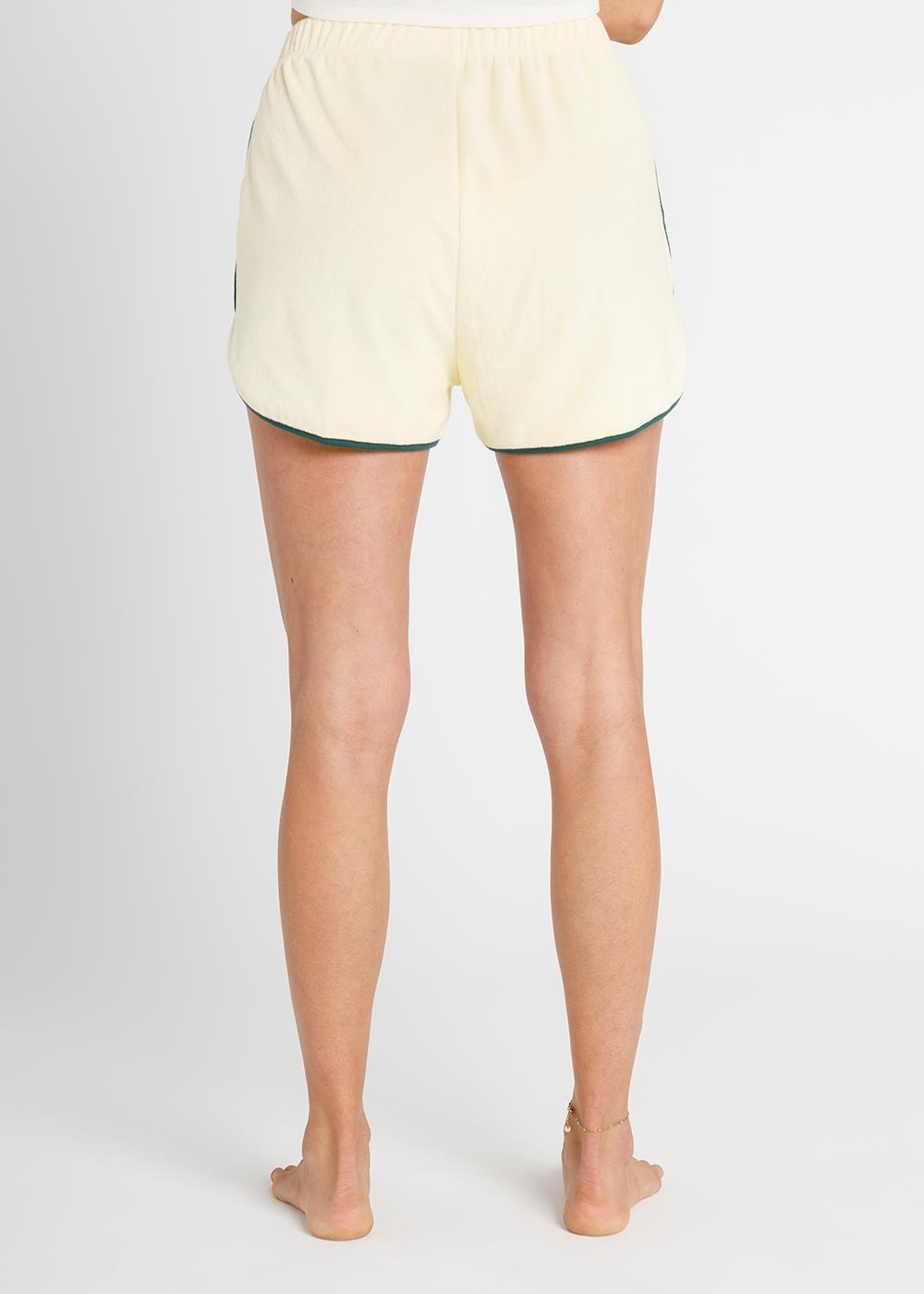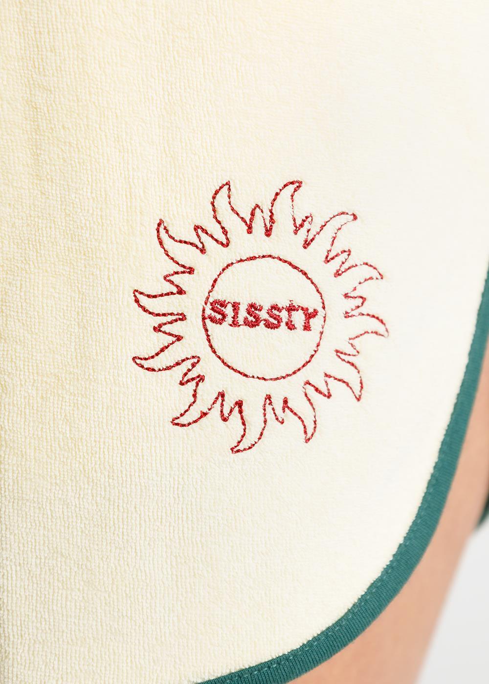 Beach walkshort in sponge fabric. Contrasted bidings. Center front Sisstr logo.
