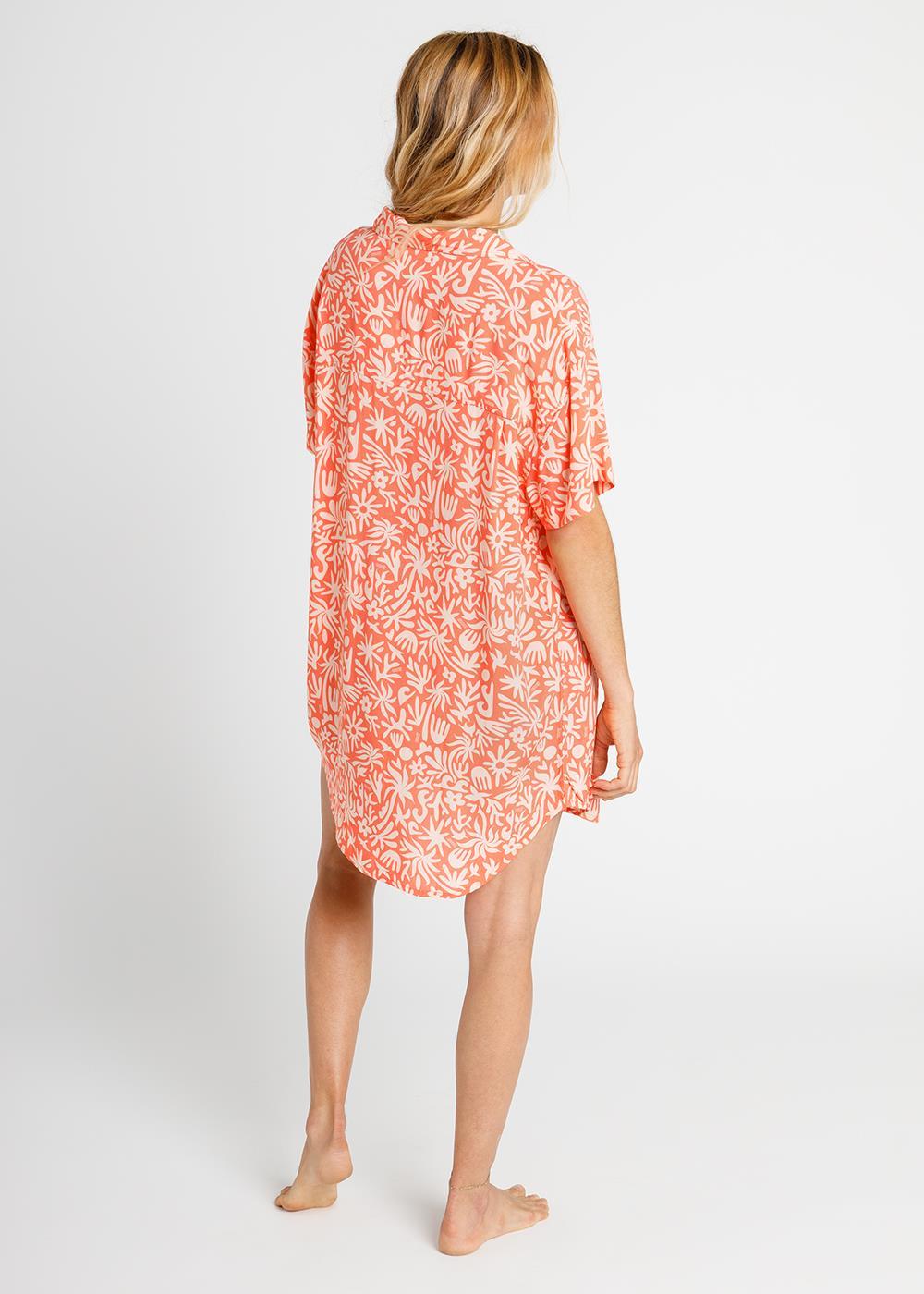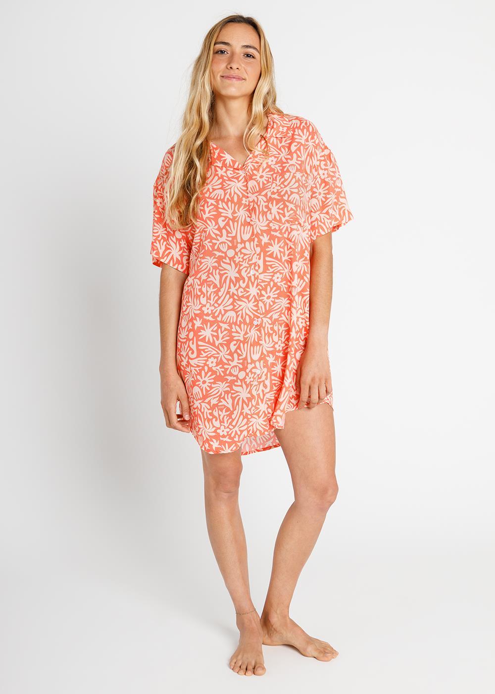 All over printed lightweight woven dress in viscose. Front buttoned placket and a chest pocket.