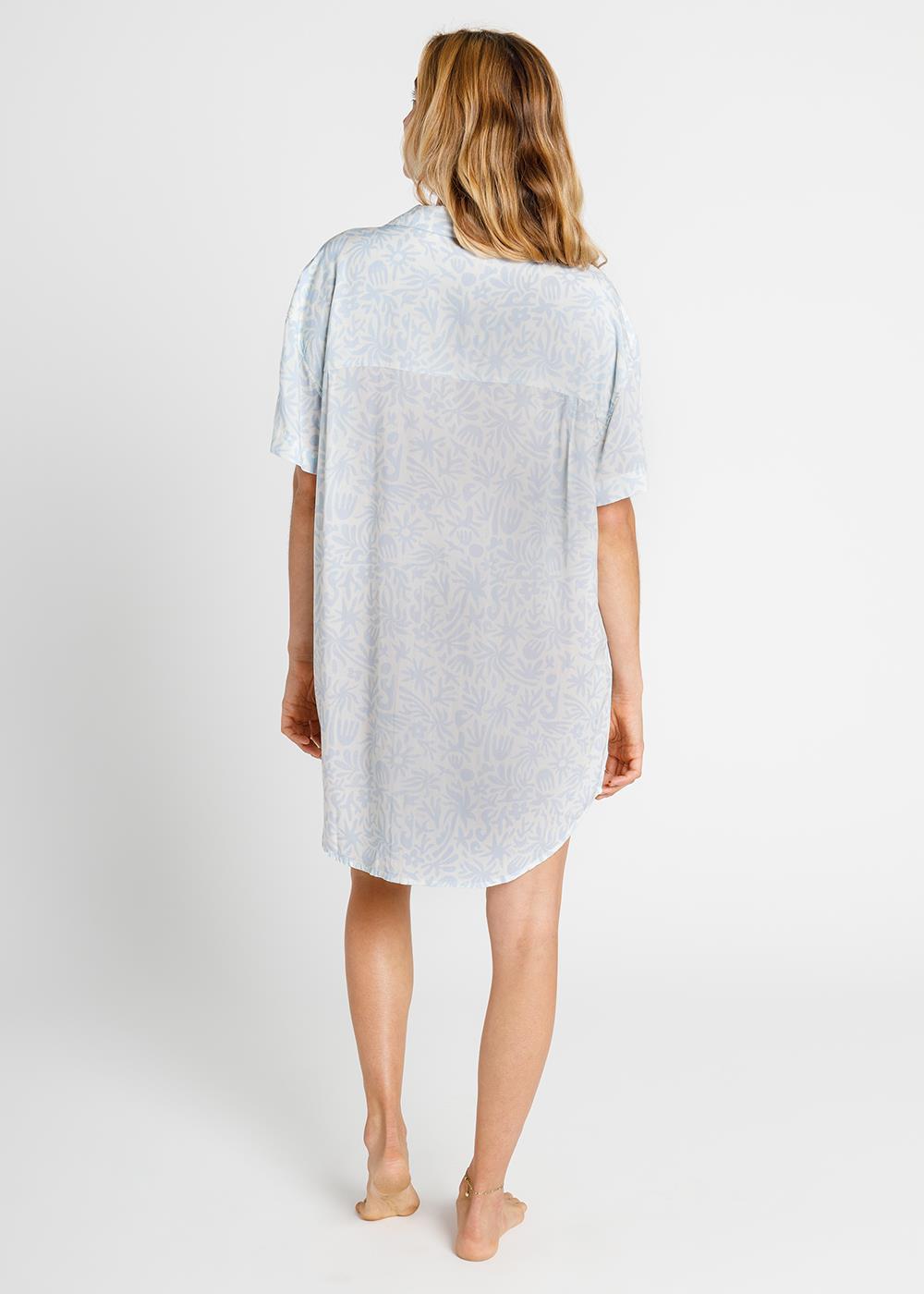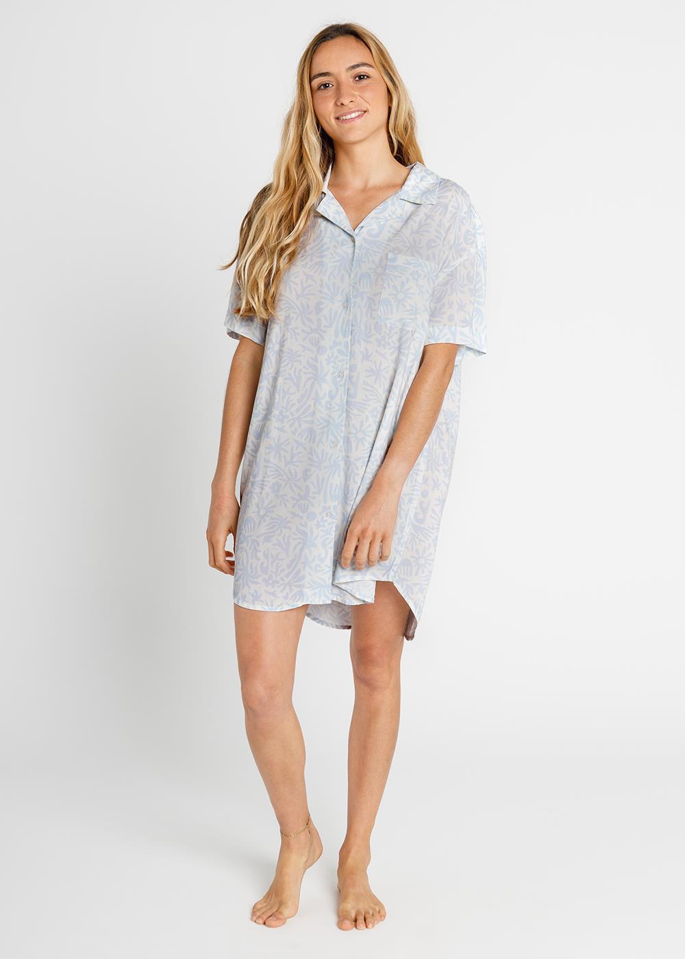 All over printed lightweight woven dress in viscose. Front buttoned placket and a chest pocket.