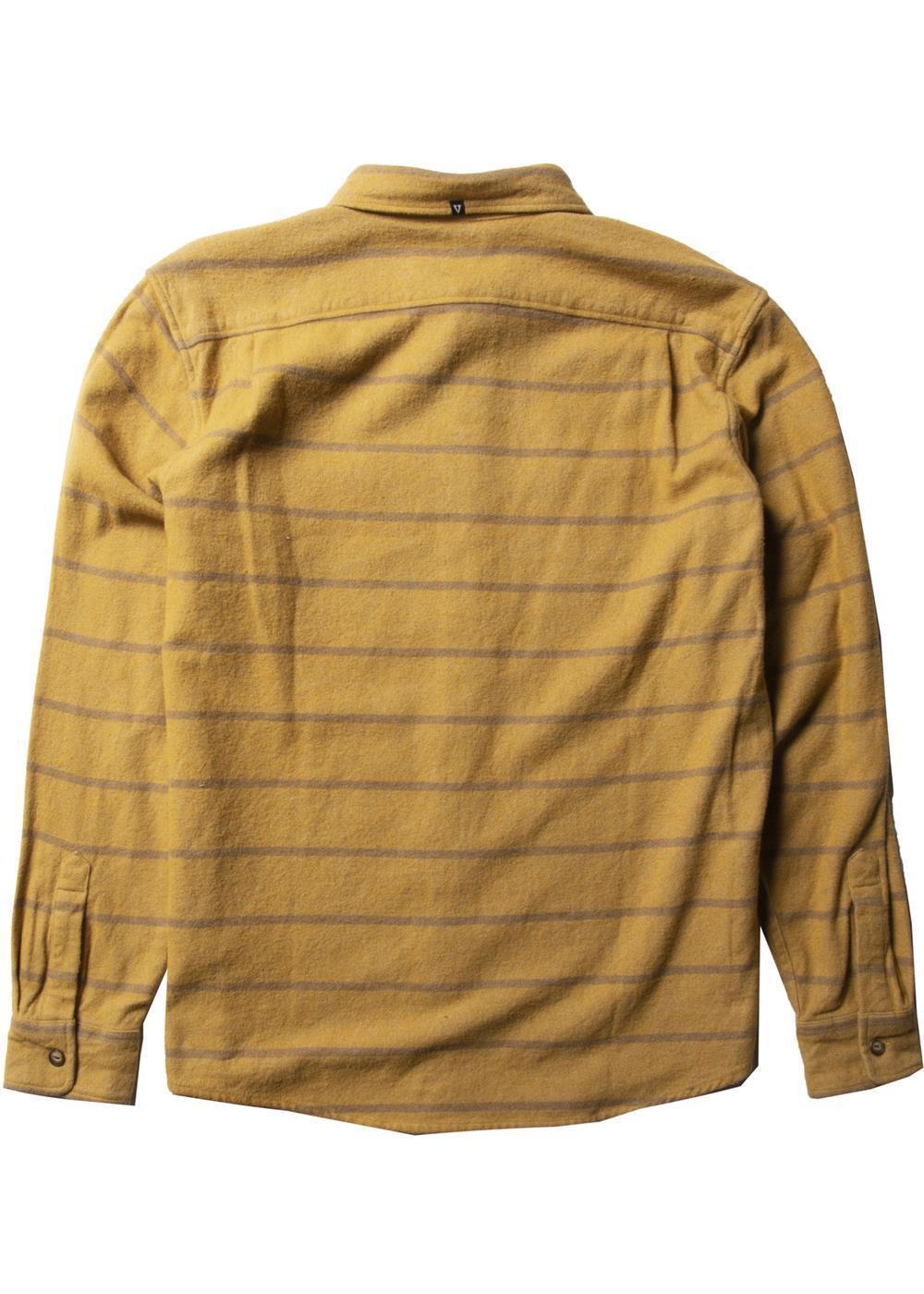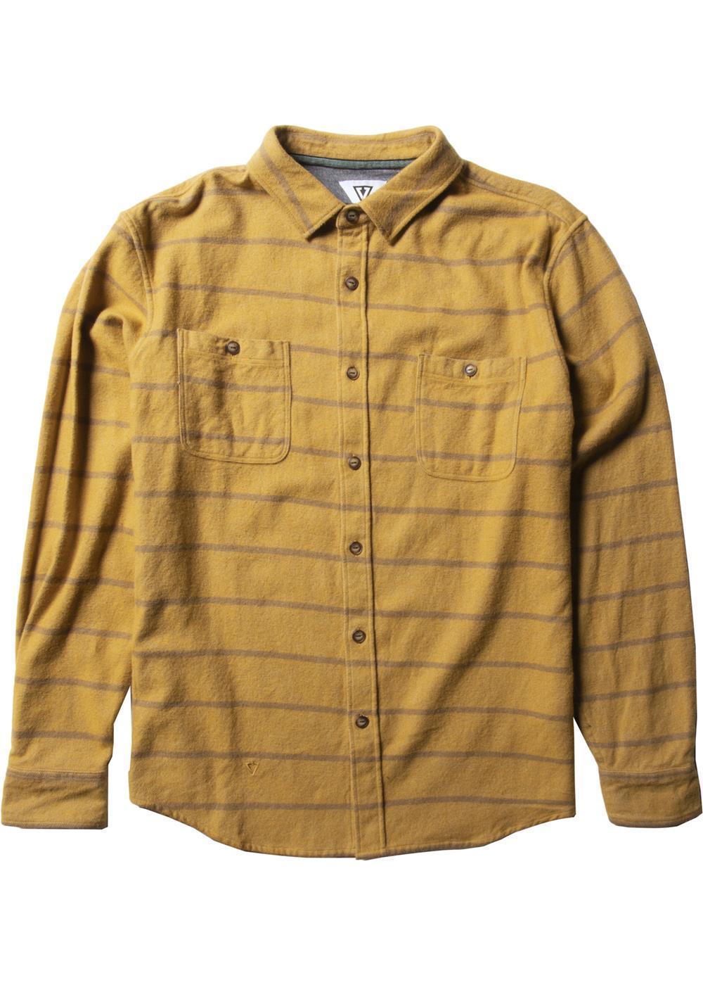 Super soft brushed heavy weight LS solid flannel. Sewn in center front placket with button down front chest pockets and contrast chambray lining at inside back yoke. Heavy garment wash.