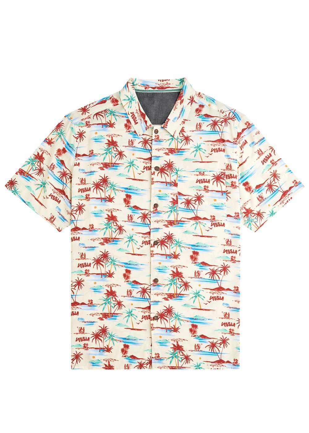 Light weight all over printed poplin long sleeve shirt with embroidery.
