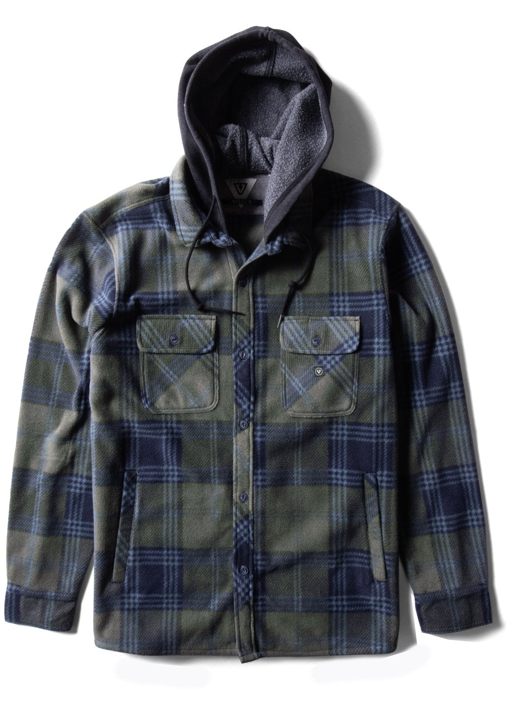 Warm up to the Eco-Zy Shirt Jacket, our ultra-soft and versatile heavyweight polar fleece. This “shirt jacket” is constructed with a built-in fleece hood, making it the perfect cold weather companion. Styling includes front chest pockets with button down flap, hand pockets, and Vissla woven label trims. Heavy garment wash.