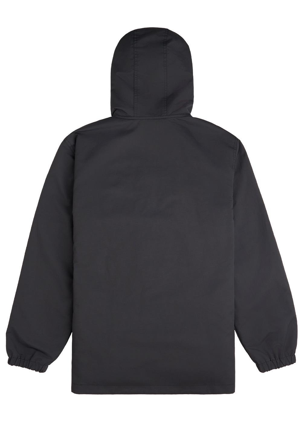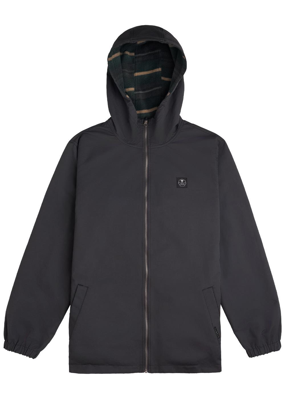 Reversible winter jacket. Made out of a cotton & nylon outershell and polar fleece interior. The garment has a hood with a high rise zipper collar and two hand pockets. the jacket also has elastic cuffs for extra comfort.