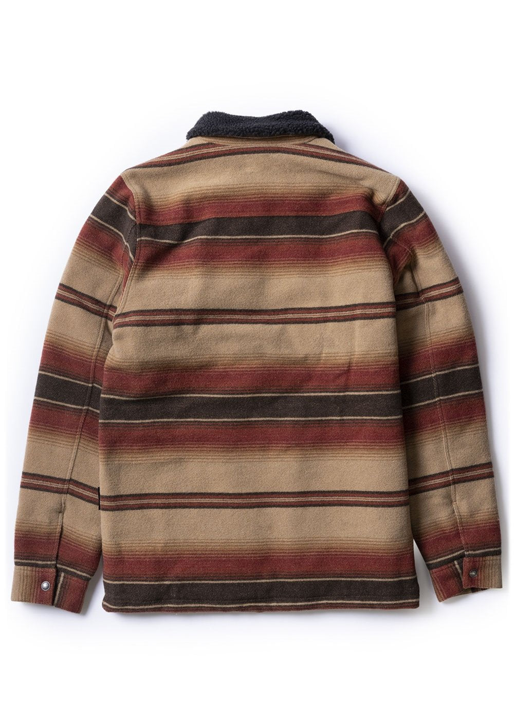 Our creative spin on an iconic western jacket, the Buffalo features a durably heavy weight Poly/Wool construction, with water resistant coating. Quilted polyfill lining at both sleeves and body keep the thermostat at max, while the sherpa collar adds a bit of texture and flair. Details include button down chest pockets and taffeta lined hand pockets.